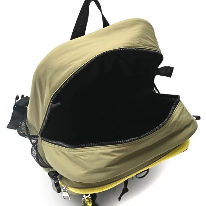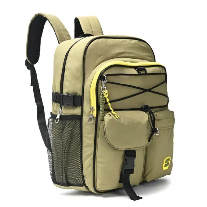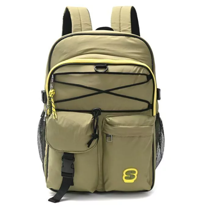 Posee 1 bolsillo frontal con cierre de gran tamaño, dos bolsillos en su parte frontal de tamaño mediano y dos bolsillos laterales portabotella de red.