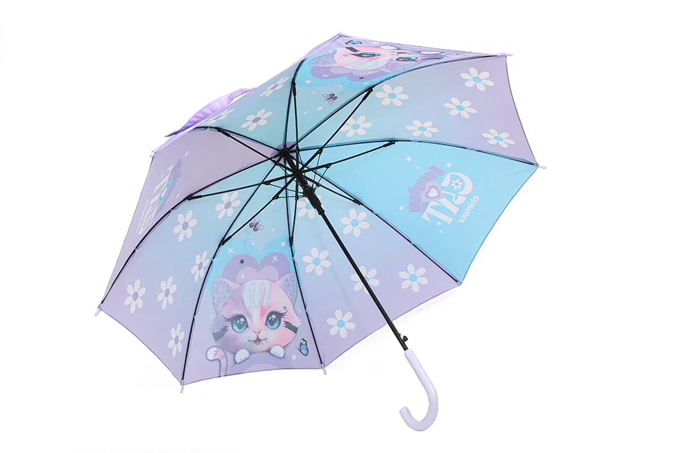 para niñxs! Este encantador paraguas grande combina funcionalidad y estilo con un diseño irresistible de gatito. Con tonos violeta y celeste, es una combinación perfecta de dulzura y practicidad. Este paraguas no solo mantendrá a tu pequeñx protegidX de la lluvia, sino que también le añadirá un toque de diversión a sus días lluviosos. Su diseño de gatito super tierno seguramente robará corazones mientras pasean bajo la lluvia. ¡Haz que los días grises sean más brillantes con nuestro adorable paraguas!