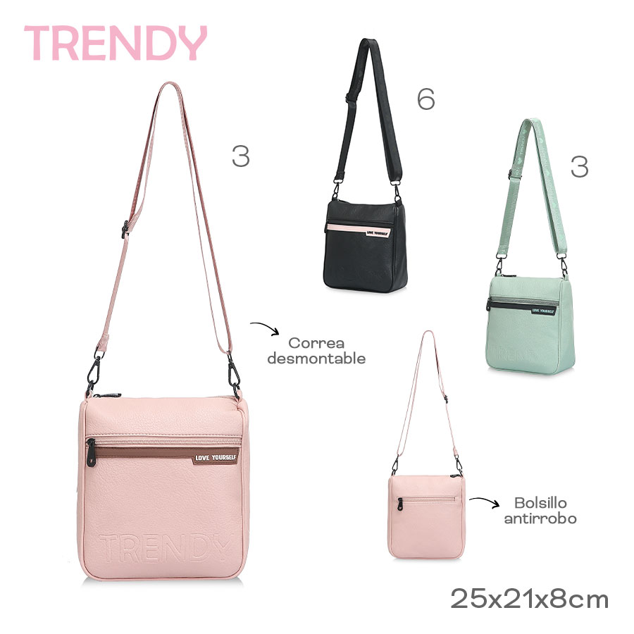 Cartera bandolera Morral trendy negro con rosa art. 17501